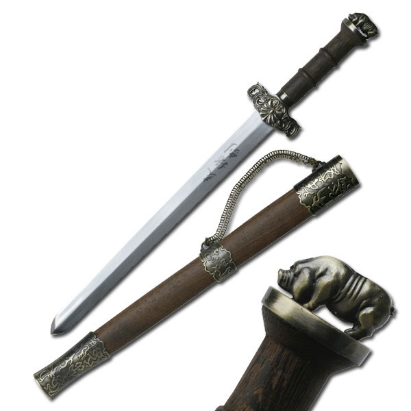 ORIENTAL SWORD 17" OVERALL 11" 440 STAINLESS STEEL BLADE, LASERED ON ZODIAC CHARACTER CHINESE ZODIAC SHORT SWORD, YEAR OF BOAR 4.25" BROWN WOOD HANDLE METAL GUARDSpecifications